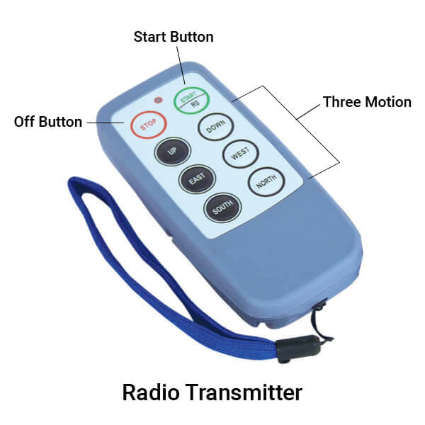 “Motion” is the term used to refer to how many different components a radio can control. A 1 motion radio is used to control a hoist. A 2 motion radio is used to control a hoist and trolley. A 3 motion radio is used to control a hoist, trolley, and a bridge. Radios with 4 or more motions are for more advanced applications where the operator wants control multiple hoists, trolleys, or bridges all at the same time.