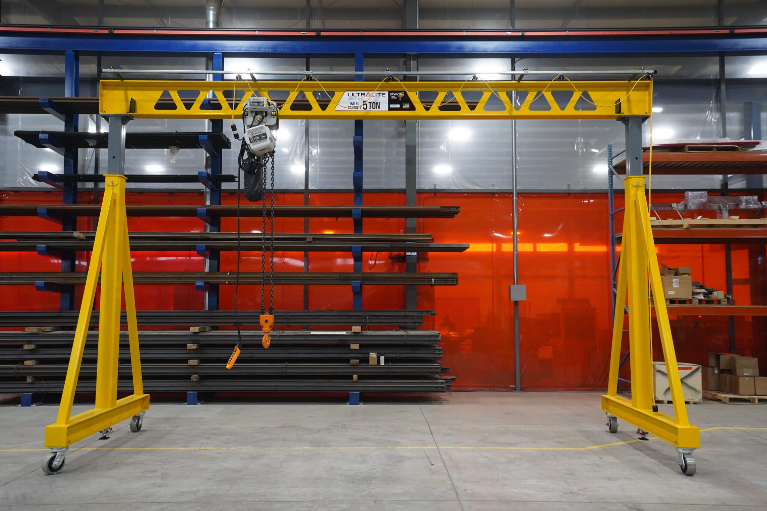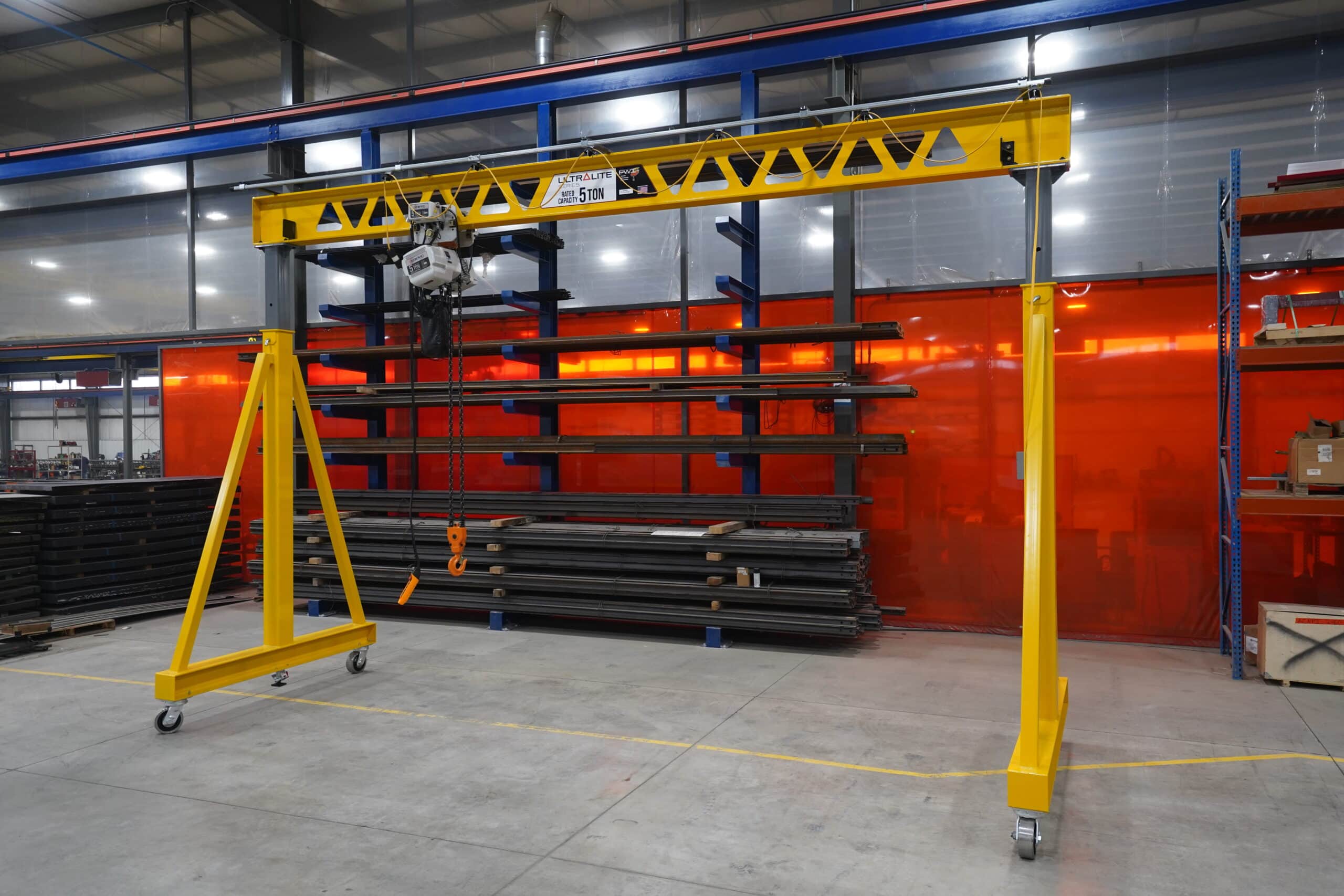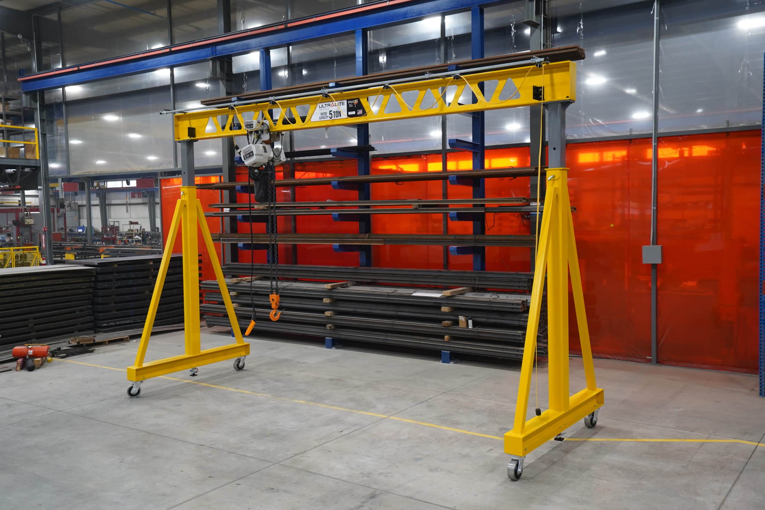 The Ultralite Telescoping Gantry Crane can be positioned anywhere you need to lift and position materials. View 12′ – 16′ HUB Range Option.