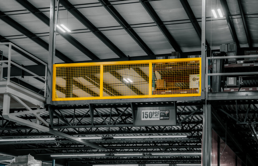Mezzanines take advantage of vertical space. A mezzanines is a raised platform that will be on top of your work area. Our design team will design a mezzanine that will fit your workspace.